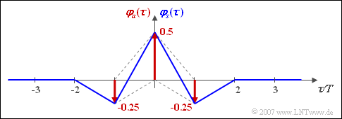 - $$ \varphi_a(\lambda = 0) = {\rm E}[a_\nu^2] \hspace{0.15cm}\underline {= 0.5} \hspace{0.05cm}.$$