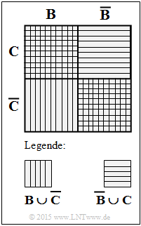 - Mit der Boolschen Beziehung $(B \cup \overline C) \cap (\overline B \cup C) = (B \cap C) \cup (\overline B \cap \overline C)$ erhält man schließlich (siehe Skizze):