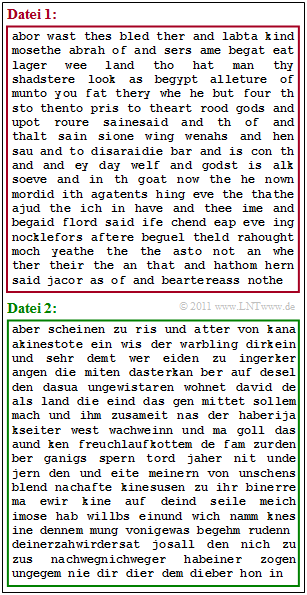 - In der $\text{Datei 1}$ erkennt man viele englische Wörter, in der $\text{Datei 2}$ viele deutsche.