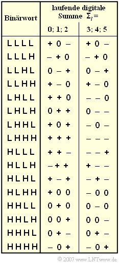 2  Ausgehend von ${\it \Sigma}_{0} = 0$ ergeben sich für die laufende digitale Summe folgende Werte:
