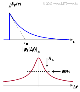 - $$\varphi_{\rm F}(\Delta f) \hspace{0.2cm} {\bullet\!\!-\!\!\!-\!\!\!-\!\!\circ} \hspace{0.2cm} {\it \Phi}_{\rm V}(\tau)\hspace{0.05cm}.$$