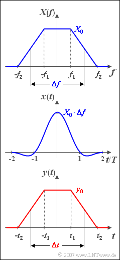 - $$x( t ) = X_0 \cdot \Delta f \cdot {\mathop{\rm si}\nolimits} ( { {\rm \pi} \cdot \Delta f \cdot t} ) \cdot {\mathop{\rm si}\nolimits} ( { {\rm \pi} \cdot r_{\hspace{-0.05cm}f} \cdot \Delta f\cdot t} ).$$