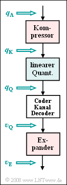 - des linearen Quantisierers ⇒ $q_{\rm Q}(q_{\rm K})$,