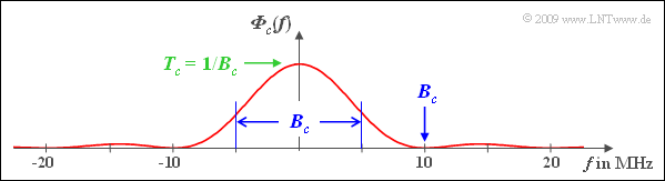 - $$\Rightarrow \hspace{0.3cm} B_c= \frac{1}{T_c}\hspace{0.15cm}\underline {= 10\,{\rm MHz}} \hspace{0.05cm}$$