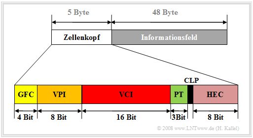 • den Generic Flow Control (GFC) – 4 Bit zur Steuerung des Zellflusses,