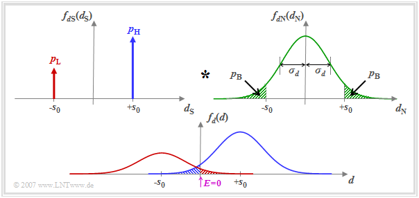 $$f_d(d) = f_{d{\rm S}}(d_{\rm S}) \star f_{d{\rm N}}(d_{\rm N})\hspace{0.05cm}.$$