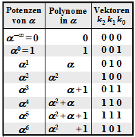 Codewort und Empfangswort lauten in diesem Beispiel in Koeffizientendarstellung:
