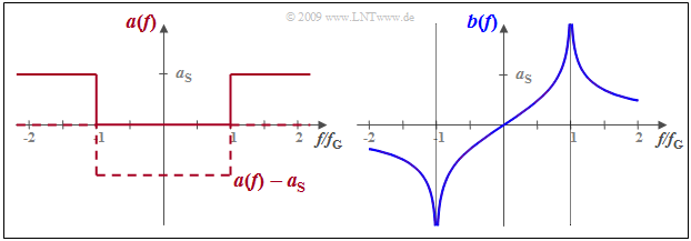 - $$b(f) = {a_{\rm S} }/{\pi} \cdot {\rm ln}\hspace{0.1cm}\left\vert \frac{f+f_{\rm G} }{f-f_{\rm G} }\right \vert \hspace{0.05cm}.$$