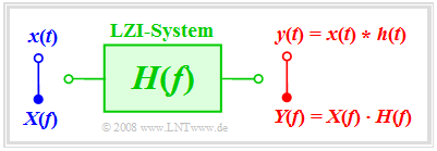 Hier folgt nun eine kurze Zusammenfassung, wobei $H(f)$ den Frequenzgang eines LZI–Systems beschreibt und dessen Fourierrücktransformierte $h(t)$ die Impulsantwort ist. Diese Gesetzmäßigkeiten werden in den Aufgaben zu diesem Kapitel „Systemtheoretische Grundlagen” häufiger angewendet.