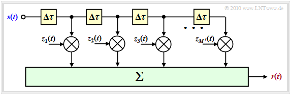 - Der Vorteil gegenüber dem ersten Modell ist, dass für die Verzögerungen nun alle Werte $\tau_m \le \tau_\text{max}$ mit der gleichen zeitlichen Auflösung $\Delta \tau$ möglich sind.