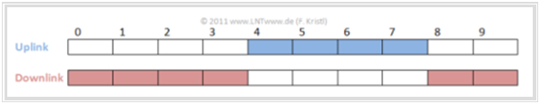 - Durch eine zweite Verbindung zu einem anderen Endgerät mit vertauschtem Downlink/Uplink–Raster kann trotzdem das gesamte zur Verfügung stehende Band voll genutzt werden.
