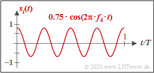 *In der Grafik dargestellt ist der Fall:  $A=0.75, \hspace{0.3cm}f= 2 \cdot f_0 =2/T, \hspace{0.3cm}\varphi= 90^\circ$   ⇒    '''sinusförmiger Verlauf'''.